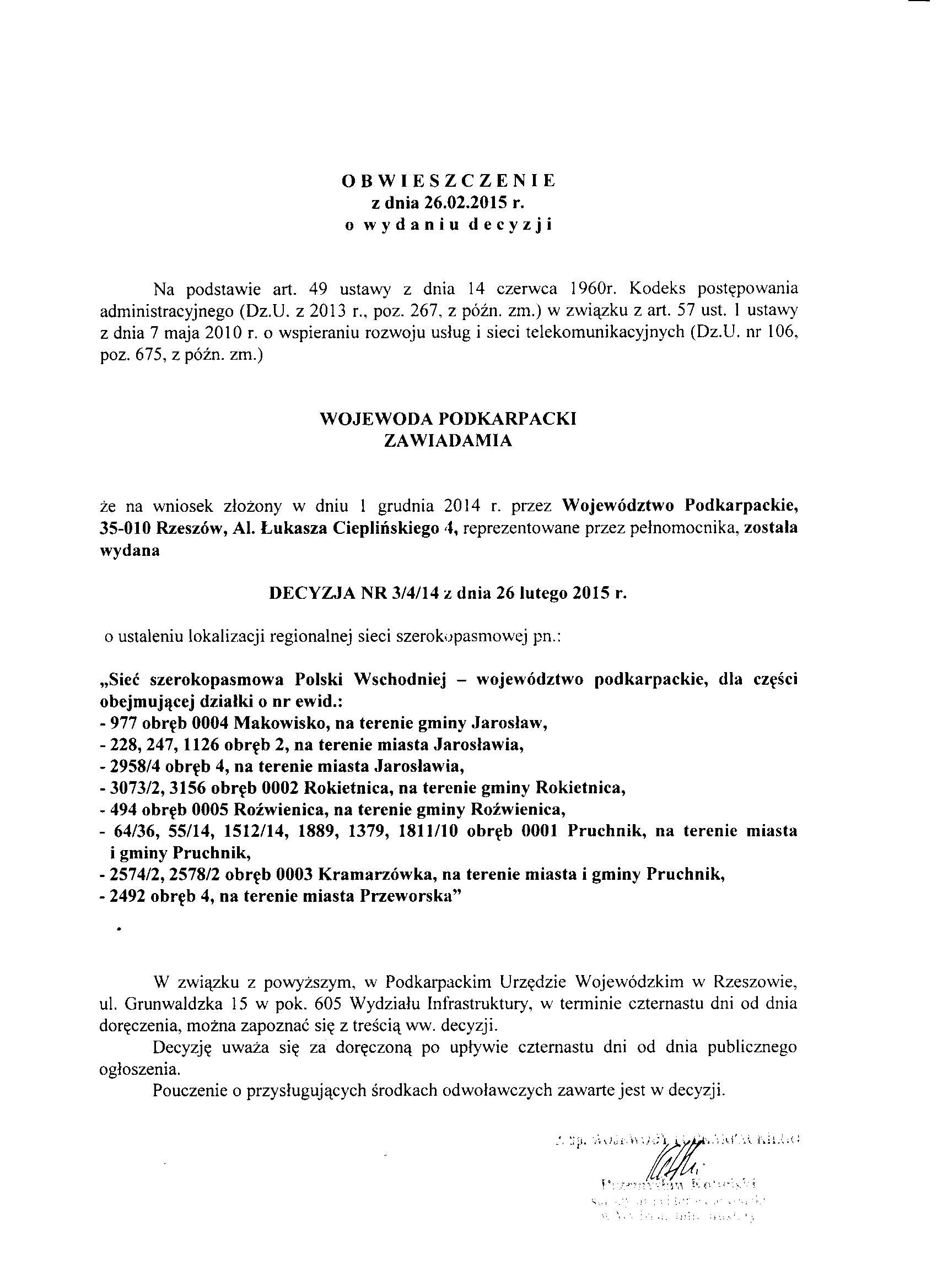 | Nazwa pozycji: | Obwieszczenie Wojewody Podkarpackiego z dnia 26.02.2015 r., |
