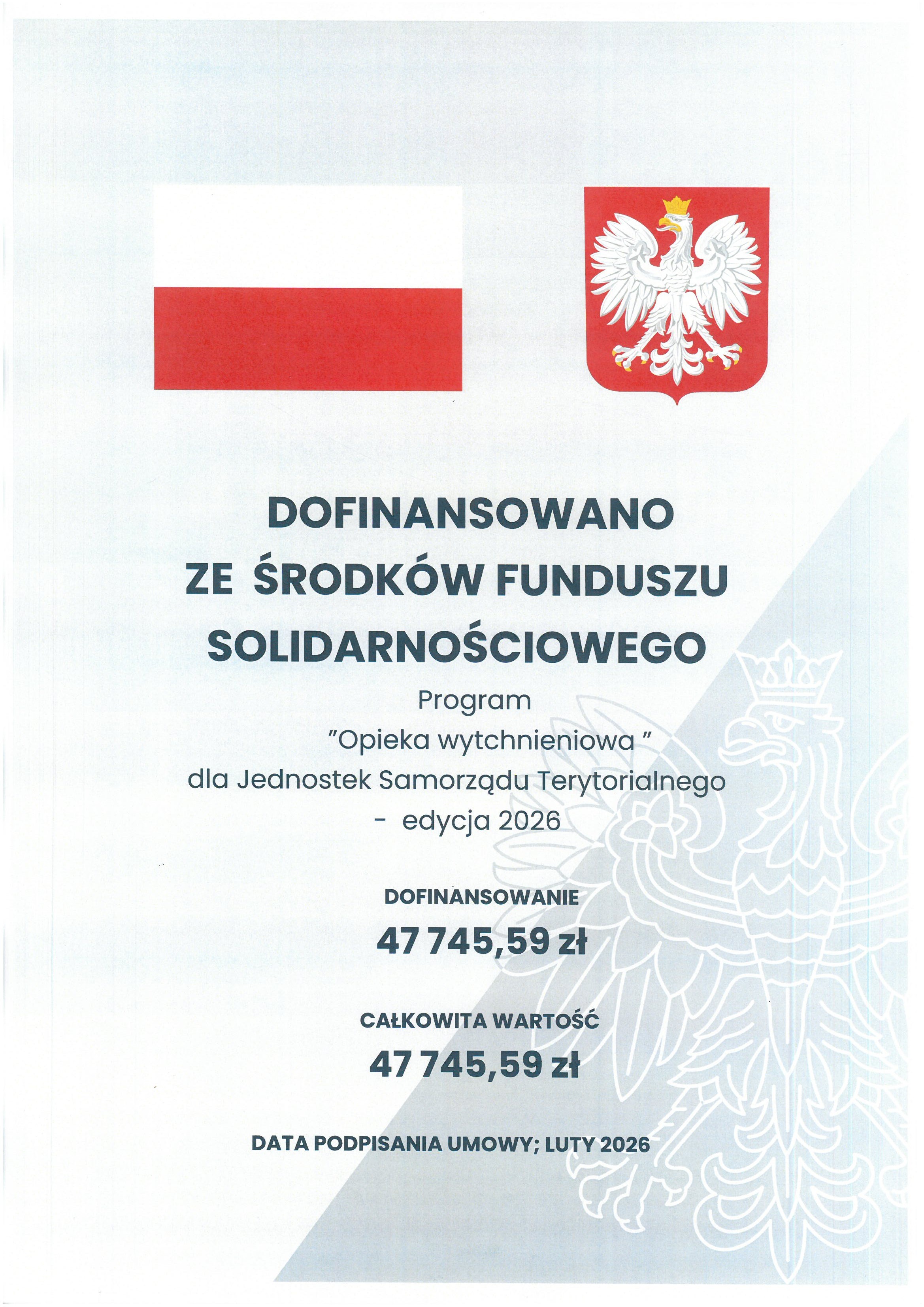 Wartość dofinansowania Programu: 47 745, 59 zł