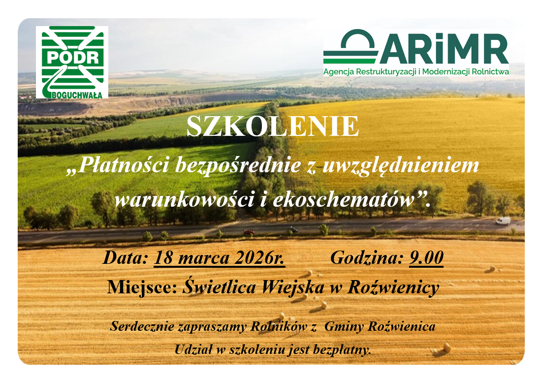 Zaproszenie na szkolenie - Płatności bezpośrednie z uwzględnieniem warunkowości i ekoschematów.