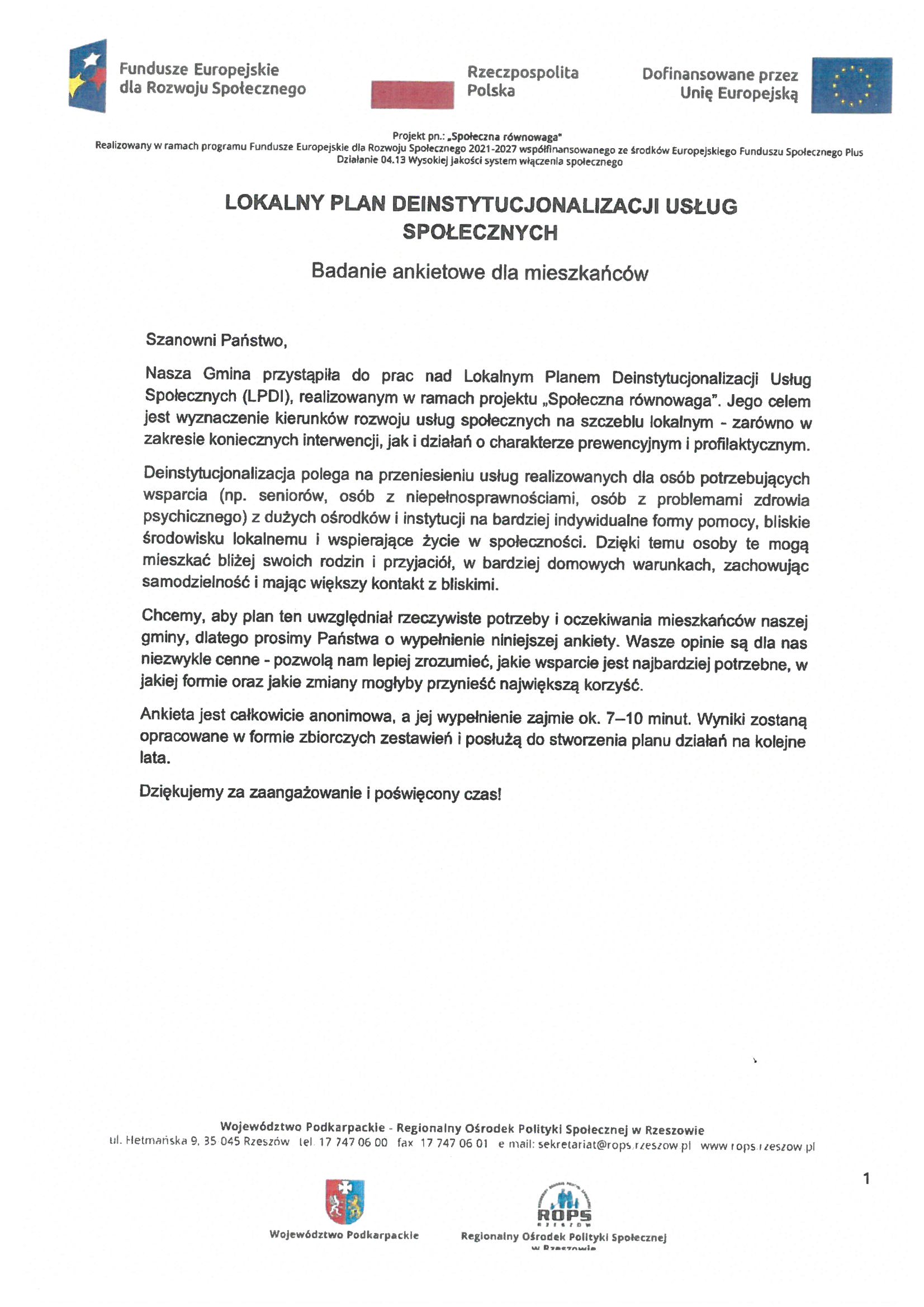 Badanie ankietowe dla mieszkańców - Jakie potrzeby mają mieszkańcy naszej gminy w zakresie usług społecznych?