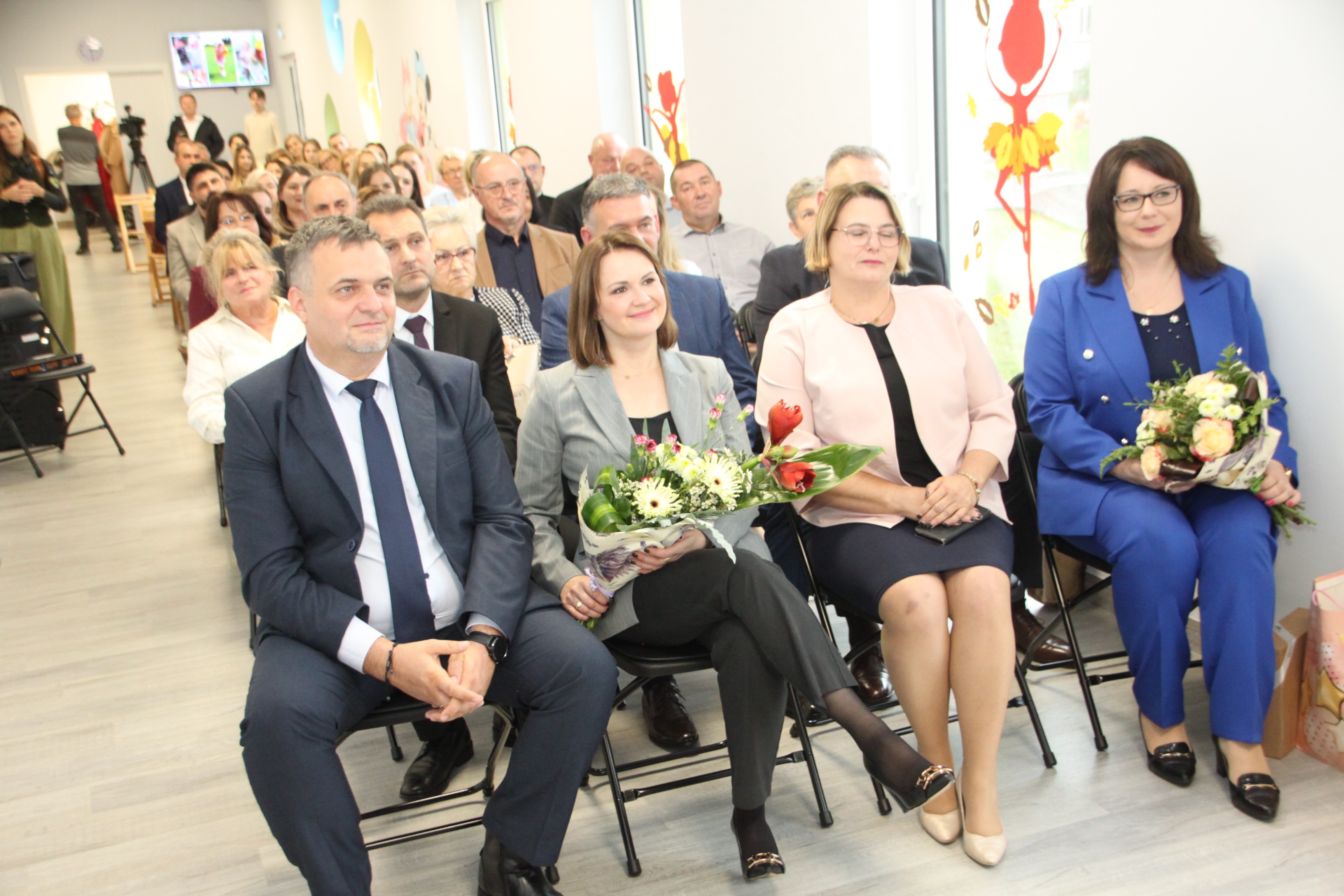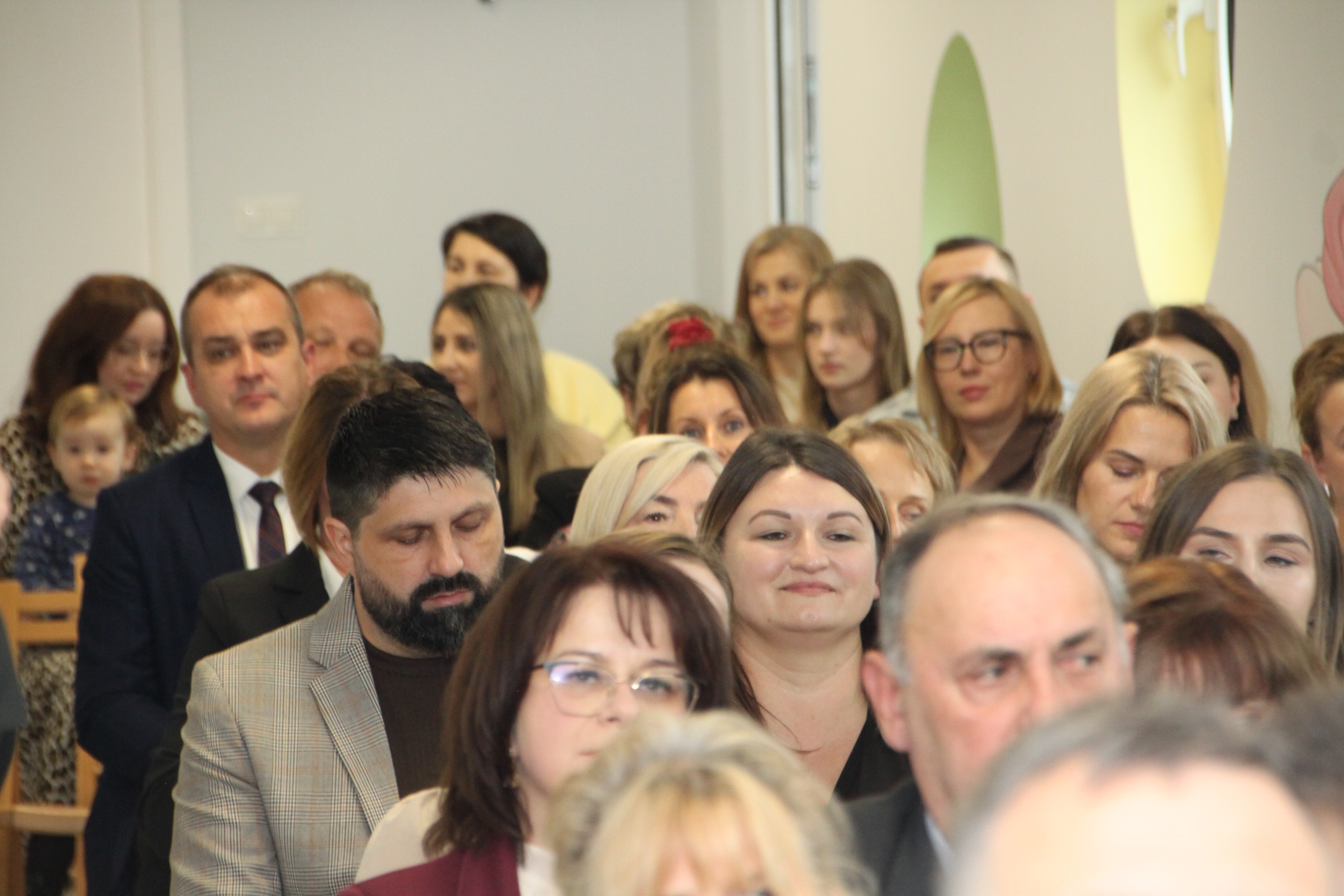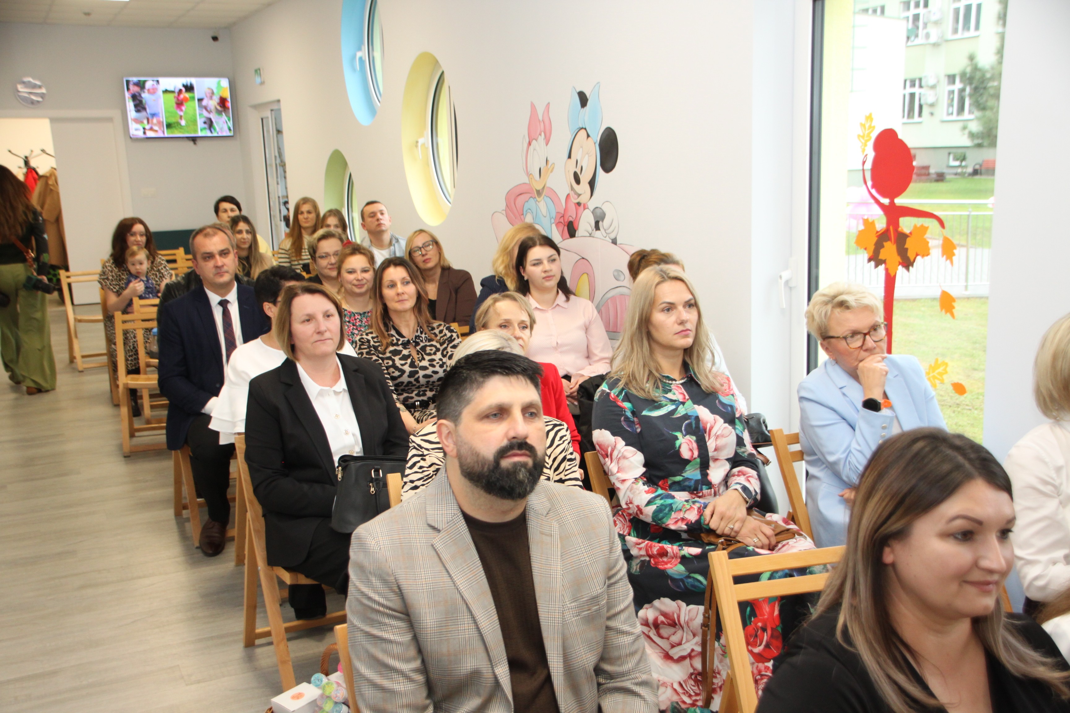 Po części oficjalnej goście mieli okazję zwiedzić wnętrza żłobka. Nowoczesne, kolorowe i funkcjonalne pomieszczenia zostały zaprojektowane tak, aby zapewnić dzieciom poczucie bezpieczeństwa, przestrzeń do zabawy i nauki oraz warunki sprzyjające harmonijnemu rozwojowi. Podczas zwiedzania nie brakowało rozmów, gratulacji i słów uznania dla całego zespołu, który zrealizował inwestycję z ogromną starannością i zaangażowaniem.
