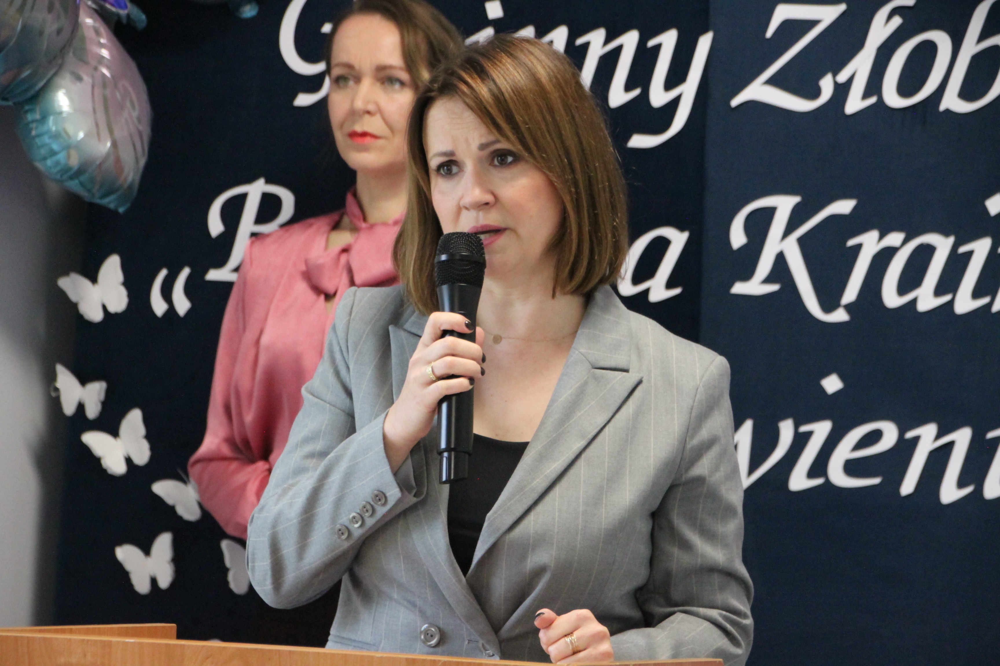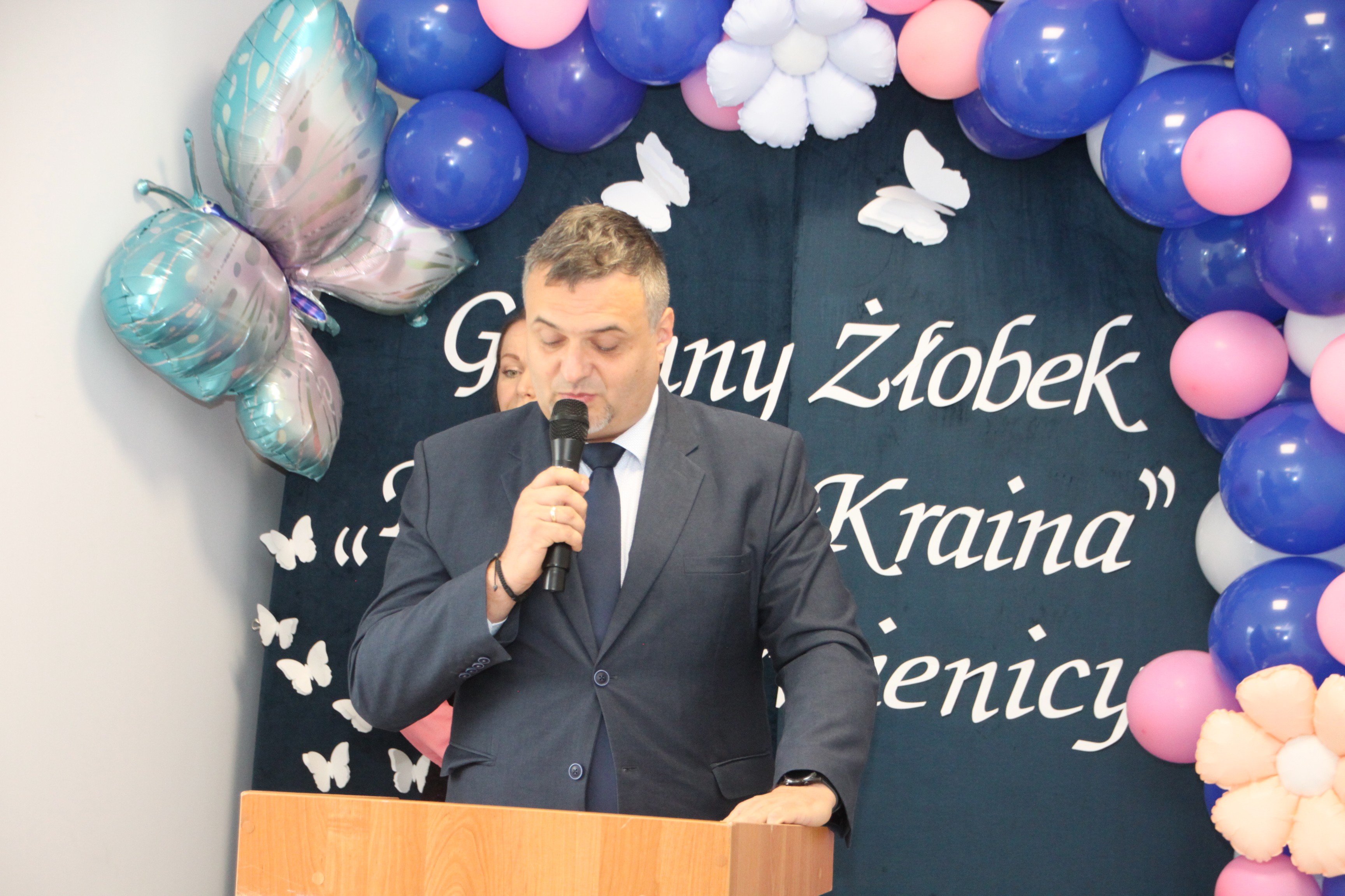 Po powitaniu gości przez konferansjera i Dyrektor Sylwię Mazur głos zabrał Wójt Tomasz Kud, który podkreślił, że powstanie żłobka to nie tylko inwestycja w infrastrukturę, lecz przede wszystkim w przyszłość najmłodszych mieszkańców gminy.