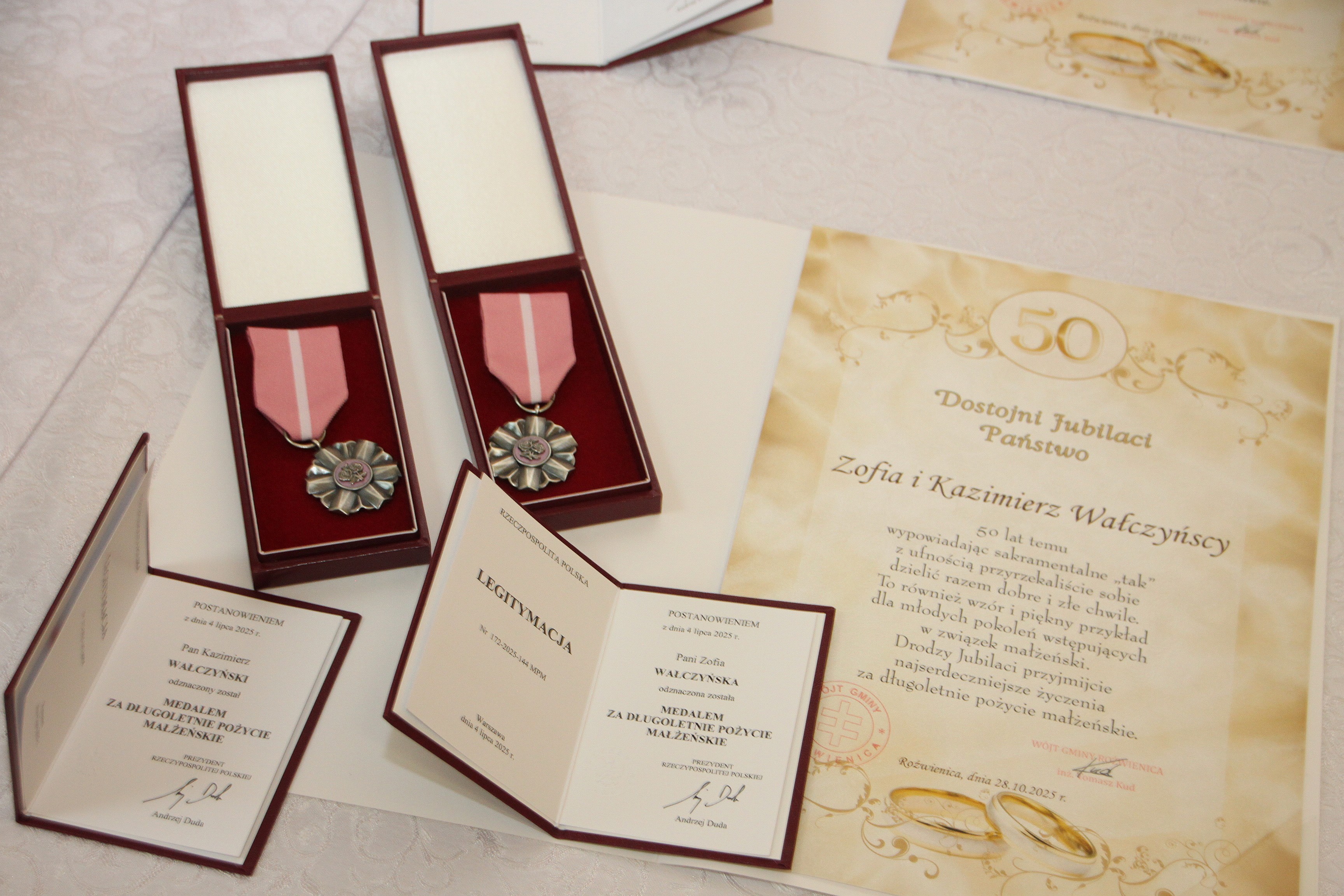 28 października 2025 roku w Wiejskim Domu Kultury w Roźwienicy odbyła się wyjątkowa, pełna wzruszeń i radości uroczystość – wręczenie Medali za Długoletnie Pożycie Małżeńskie. Odznaczenia te, nadane przez Prezydenta Rzeczypospolitej Polskiej, otrzymało sześć par małżeńskich z terenu Gminy Roźwienica, które wspólnie przeżyły co najmniej pół wieku w związku małżeńskim: