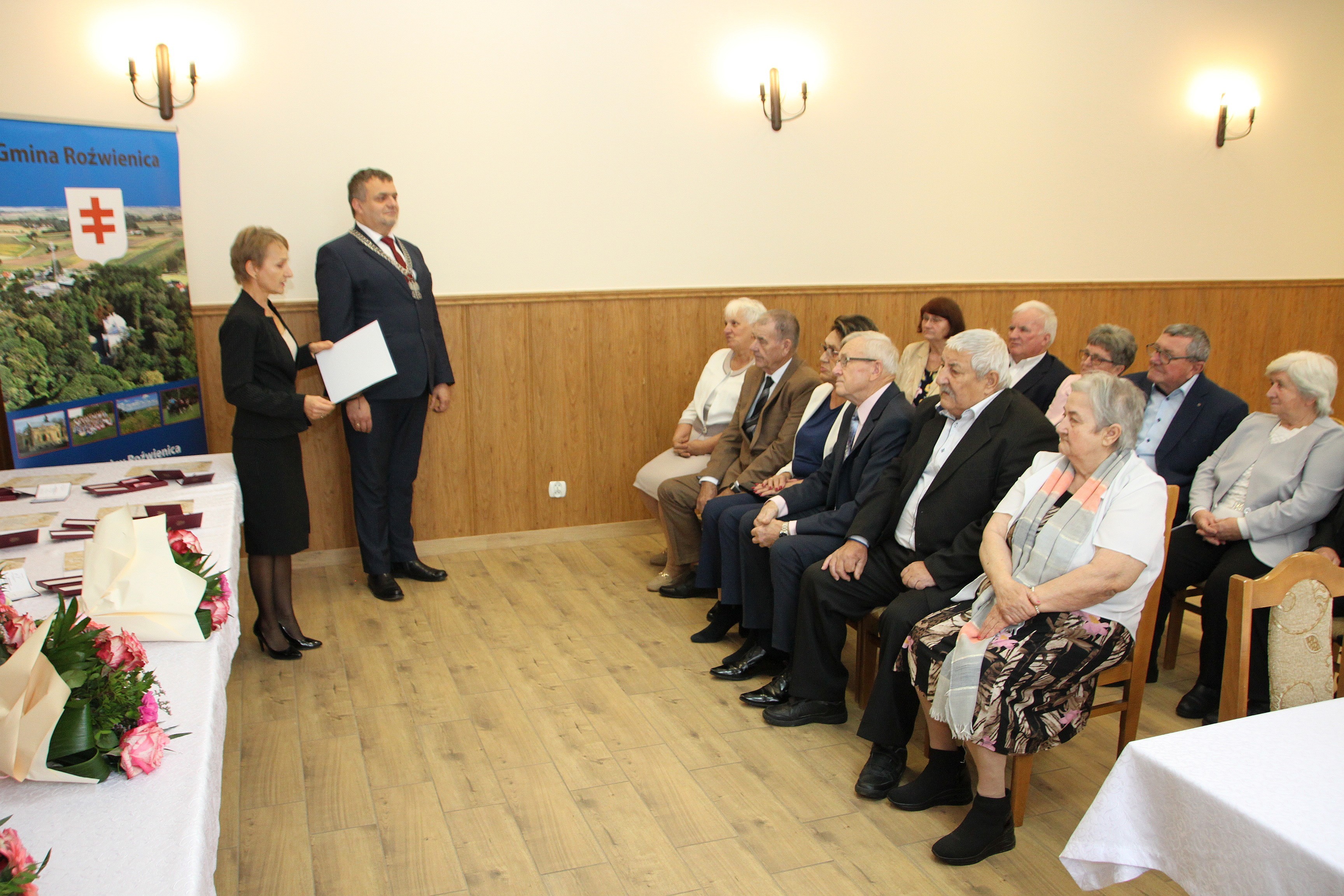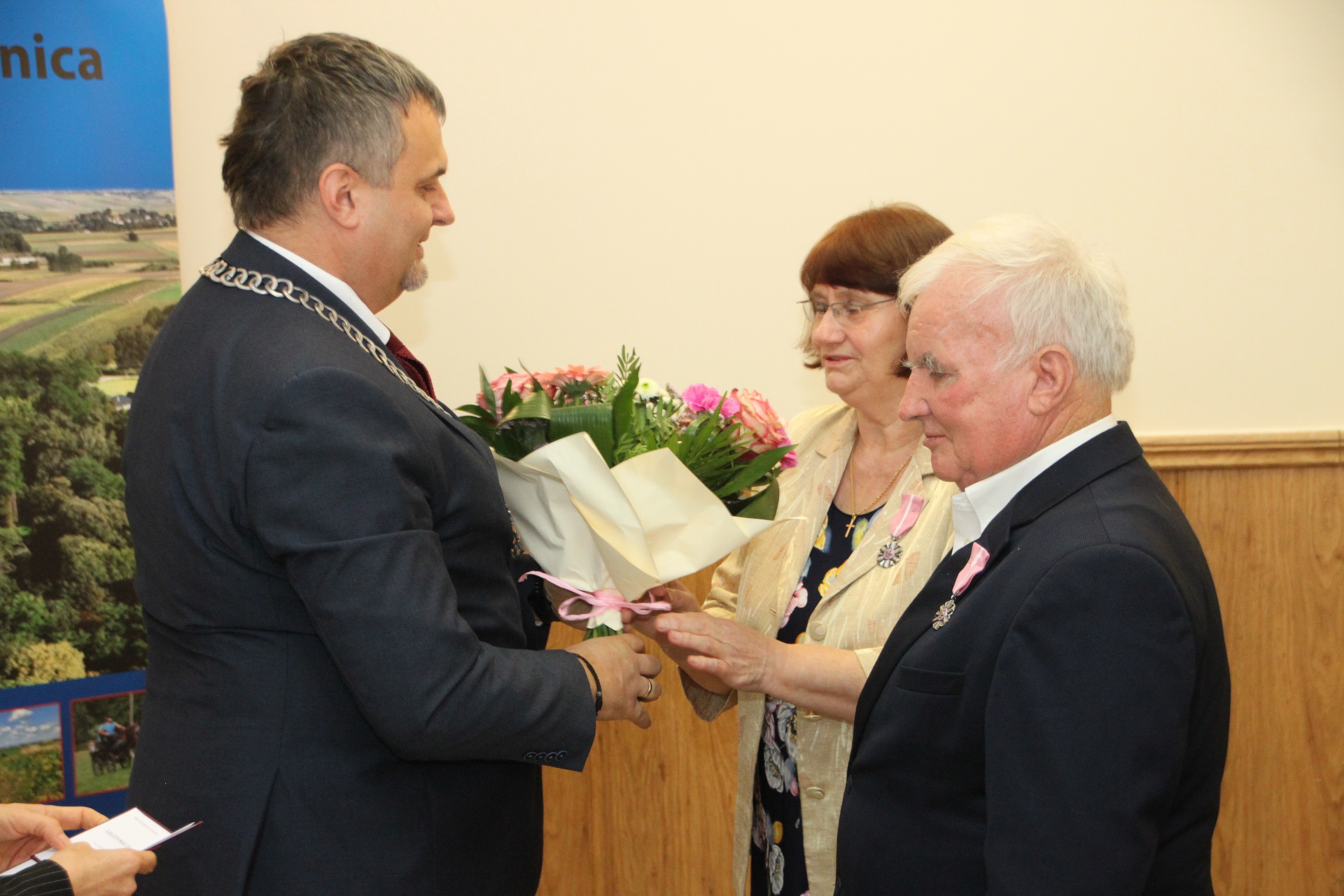 Medale wręczył Wójt Gminy Roźwienica Tomasz Kud wraz z zastępcą kierownika Urzędu Stanu Cywilnego w Roźwienicy Ewą Chmiel. Wójt w serdecznych słowach pogratulował Jubilatom tak długiego i pięknego wspólnego życia, wyrażając uznanie dla ich wierności, wytrwałości i wzajemnego szacunku. Podkreślił, że to właśnie takie pary są żywym przykładem prawdziwej miłości i inspiracją dla młodszych pokoleń.