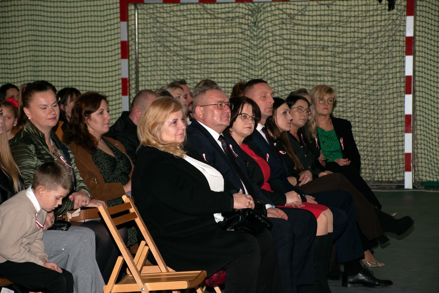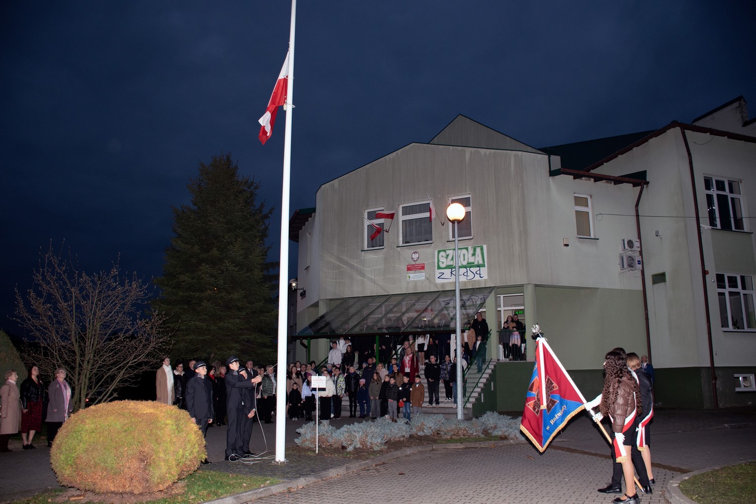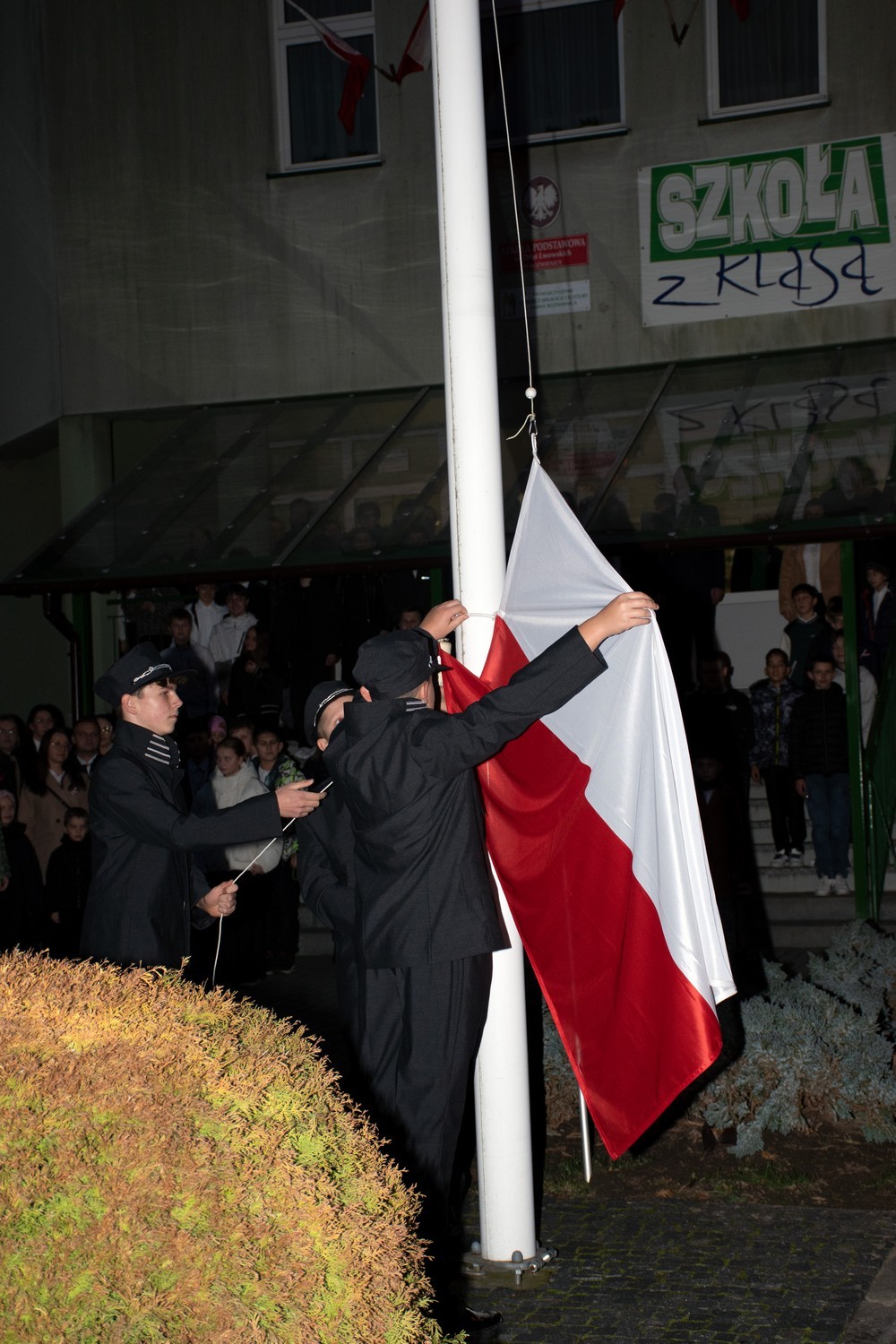 Uroczystość rozpoczęła się uroczystym wciągnięciem flagi państwowej na maszt i wspólnym odśpiewaniem hymnu narodowego przez uczniów, nauczycieli, mieszkańców oraz zaproszonych gości – w geście jedności, dumy i miłości do Ojczyzny.