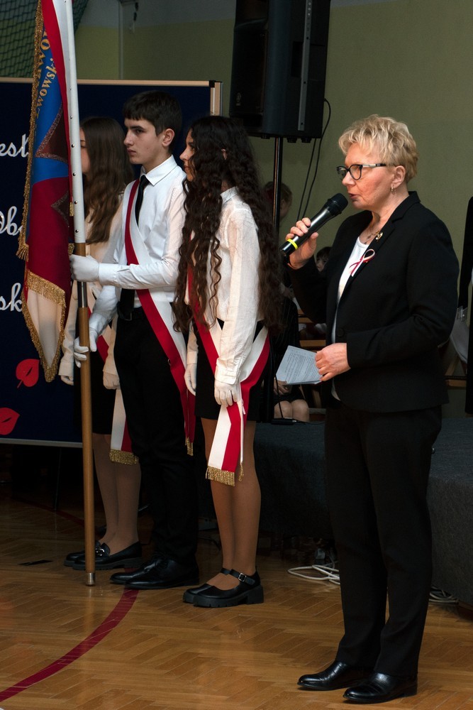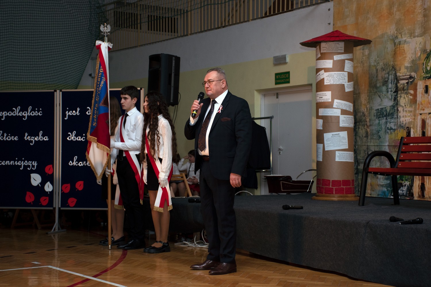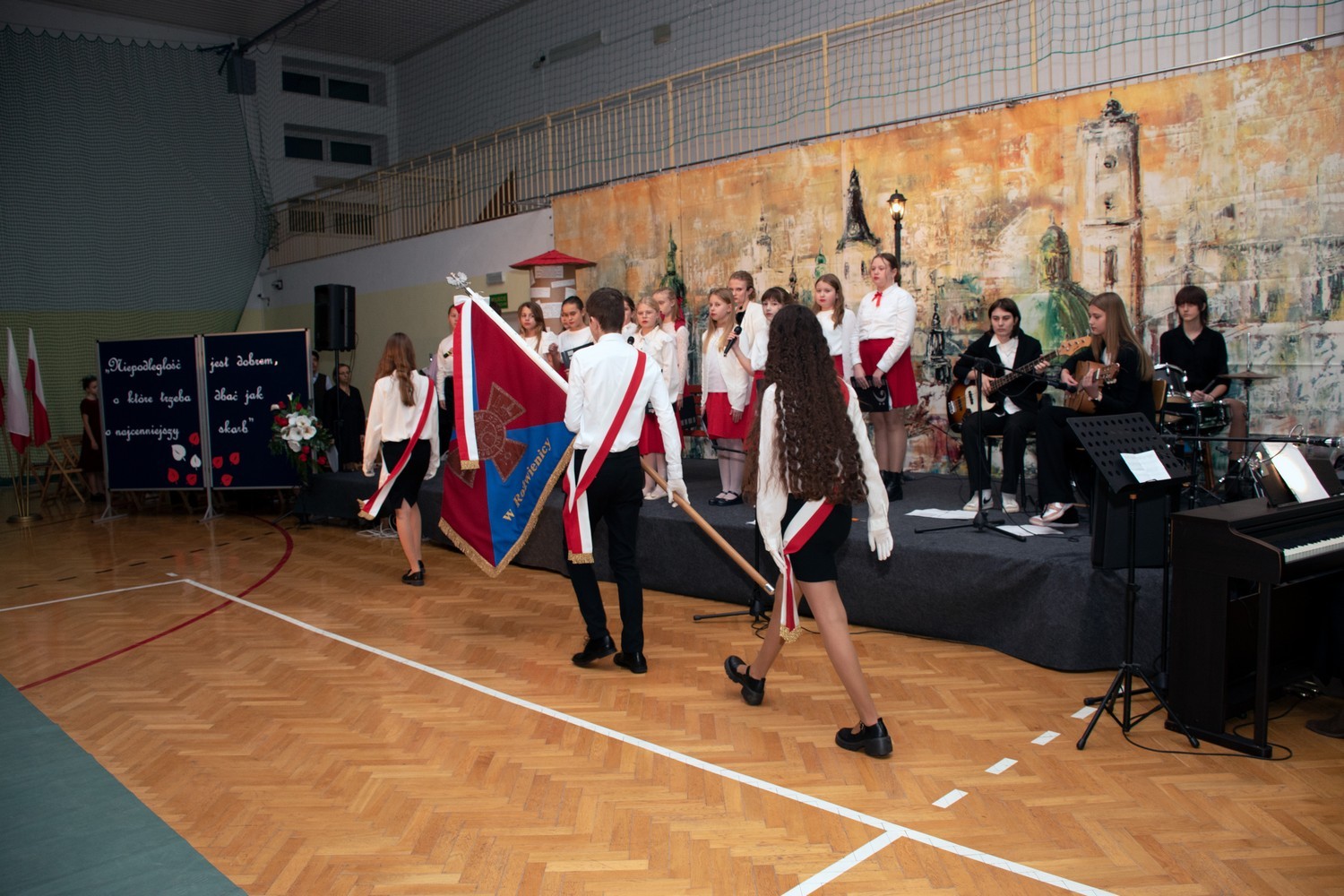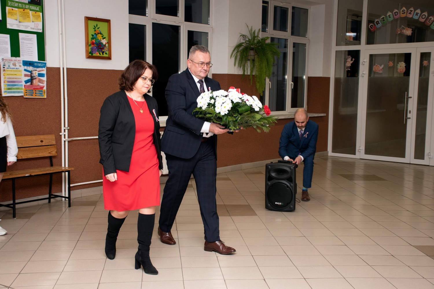 Uroczystość rozpoczęła się uroczystym wciągnięciem flagi państwowej na maszt i wspólnym odśpiewaniem hymnu narodowego przez uczniów, nauczycieli, mieszkańców oraz zaproszonych gości – w geście jedności, dumy i miłości do Ojczyzny.