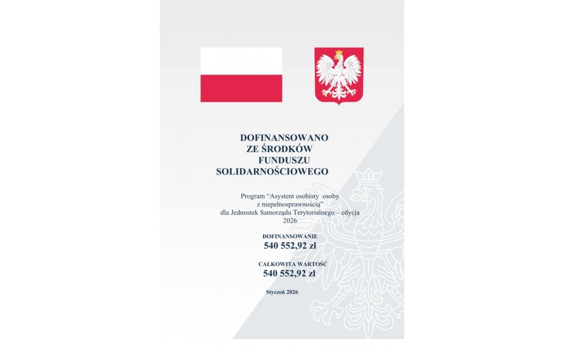 2026. Całkowita kwota środków finansowanych z Funduszu Solidarnościowego na realizację Programu wynosi 540 552,92 zł. Głównym celem Programu jest wprowadzenie usług asystencji osobistej