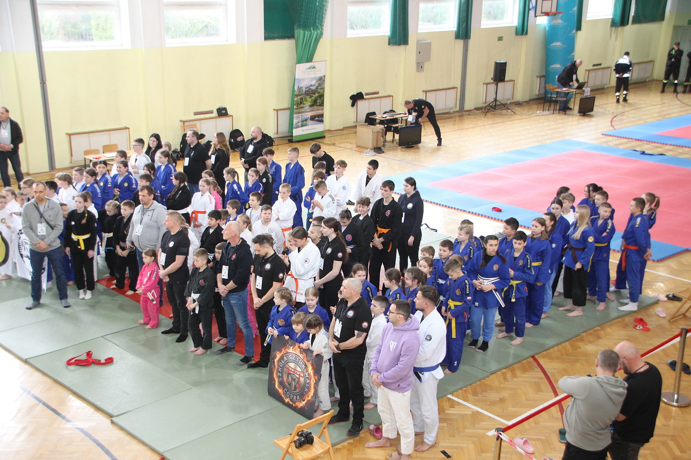Rywalizacja toczyła się równocześnie na kilku matach, a każdy pojedynek dostarczał widzom dużych emocji. Na macie spotkali się zarówno młodzi adepci sztuk walki, jak i doświadczeni zawodnicy, prezentując wysoki poziom sportowy, dynamikę oraz precyzję technik. Nad prawidłowym przebiegiem zawodów czuwali doświadczeni sędziowie, a bezpieczeństwo uczestników zapewniali druhowie OSP KSRG Roźwienica.